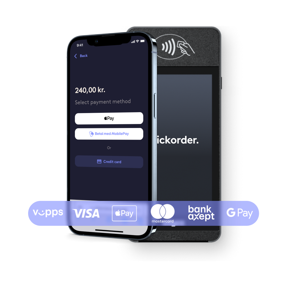 Quickorder Payments gir deg en samlet betalingsløsning, slik at du kan få bedre overblikk over dine innbetalinger. La dine gjester betale på den måten som passer dem best, uansett om det er via mobilen eller med en kortterminal. Vi utbetaler pengene dine daglig slik at du kan holde styr på likviditeten.